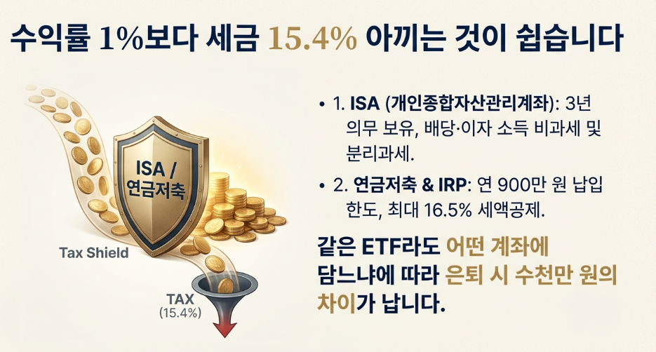 같은 S&P500 ETF라도 어떤 계좌에 담느냐에 따라 수천만 원 차이가 날 수 있습니다.