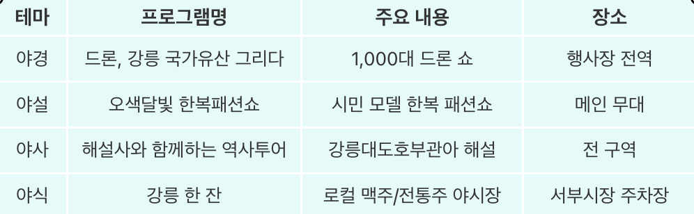 >>강릉 국가유산 야행 일정,프로그램,주차정보,맛집 요약 정리