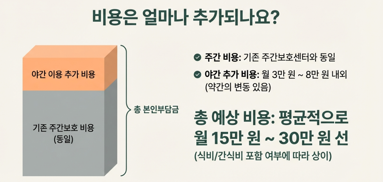 - 주간 이용 비용: 기존 주간보호센터와 동일