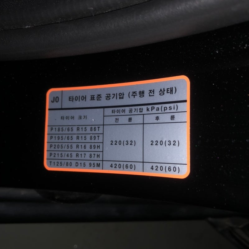 모든 차량의 최적 공기압은 다릅니다. 타이어 공기압은 보통 운전석 문 안쪽 라벨이나 차량 매뉴얼에서 확인할 수 있습니다. 이 값을 기준으로 계절에 맞게 약간의 조정을 하면 됩니다. 임의로 공기압을 높이거나 낮추는 것은 위험하니, 항상 제조사 권장치를 참고하세요.