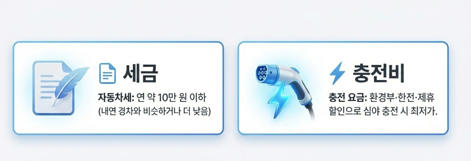 대신 취득세 감면·주차비·통행료·충전비 할인 등으로 전체 유지비는 오히려 더 저렴하다.