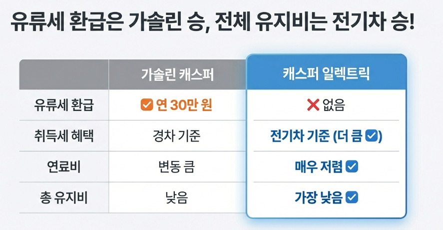 4️⃣ 가솔린 캐스퍼 vs 전기 캐스퍼 한 줄 비교