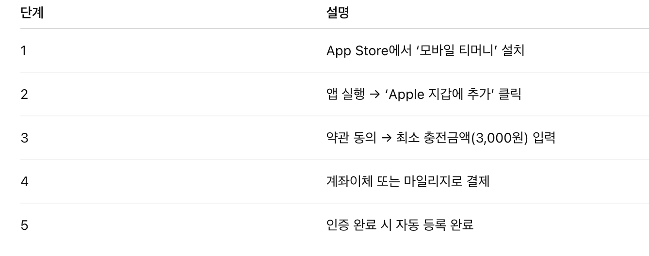 그런데 2025년 7월부터 애플페이 티머니 연동 기능이 정식 출시됐습니다!