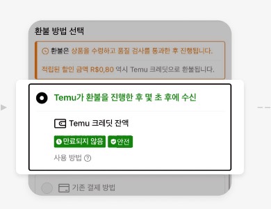 Temu 크레딧 vs 기존 결제수단 환불 비교