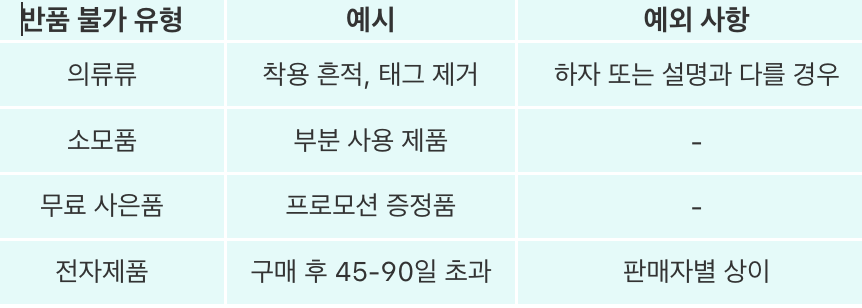 - 반품 불가 상품: 부분 환불 옵션 검토