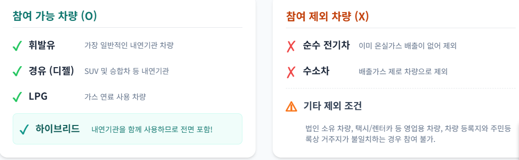 2. 내 차도 가능할까? 핵심 참여 조건 및 대상 차량
