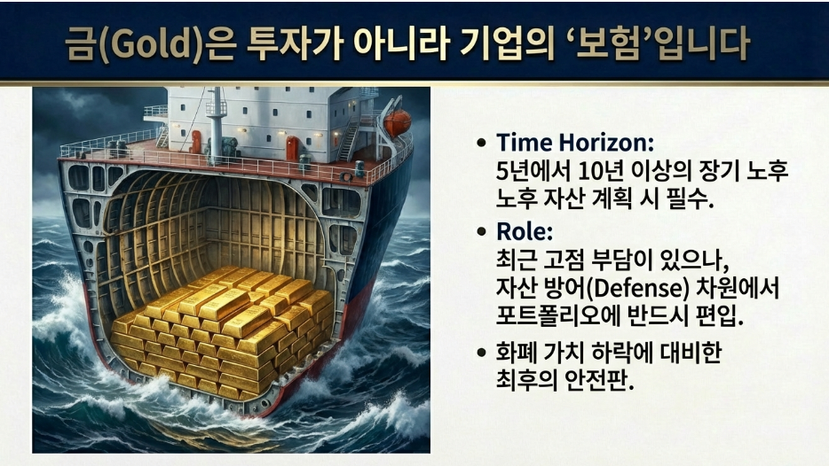 5년에서 10년 이상의 장기 노후 자산을 고려한다면, 포트폴리오에 금을 반드시 포함할 것을 권장합니다.