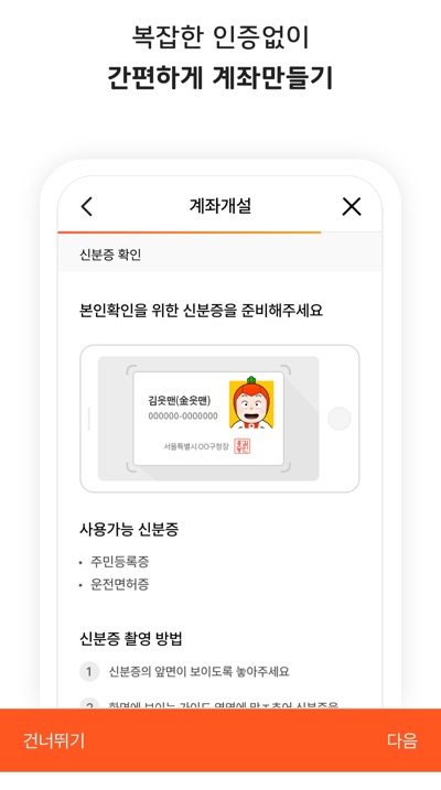 - 앱 내에서 '계좌 개설' 메뉴를 선택합니다.